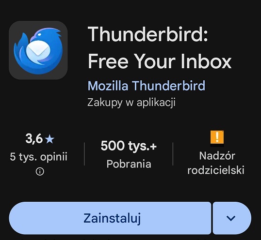 - Zainstaluj program Thunderbird ze sklepu Google Play